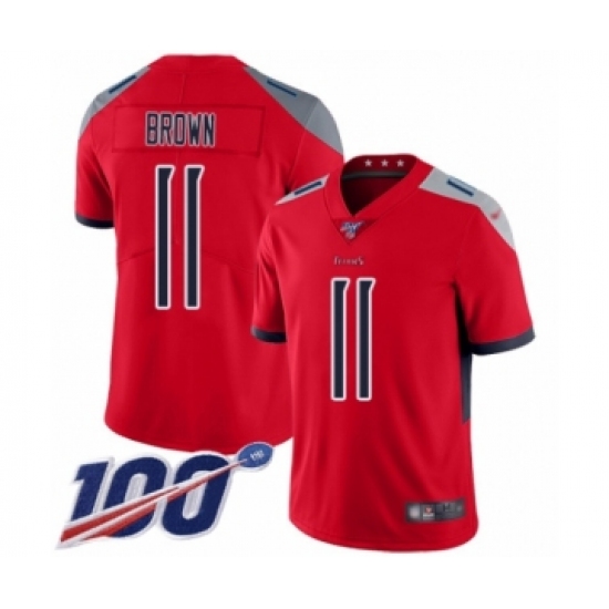 Men's Tennessee Titans #11 A.J. Brown Limited Red Inverted Legend 100th Season Football Jersey