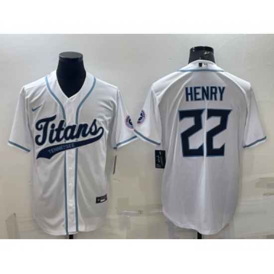 Men's Tennessee Titans #22 Derrick Henry White With Patch Cool Base Stitched Baseball Jersey