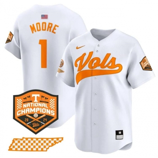 Men's Tennessee Volunteers #1 Christian Moore White 2024 Champions Vapor Limited Stitched Jersey