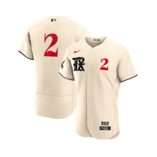 >Men's Texas Rangers #2 Marcus Semien Cream 2023 City Connect Flex Base Stitched Baseball Jersey