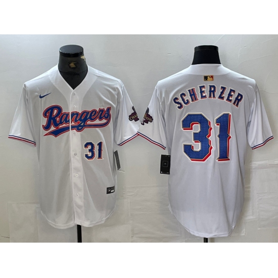 Men's Texas Rangers #31 Max Scherzer 2023 White World Series Stitched Baseball Jersey