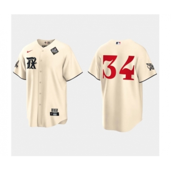 Men's Texas Rangers #34 Nolan Ryan Cream 2023 World Series City Connect Stitched Baseball Jersey