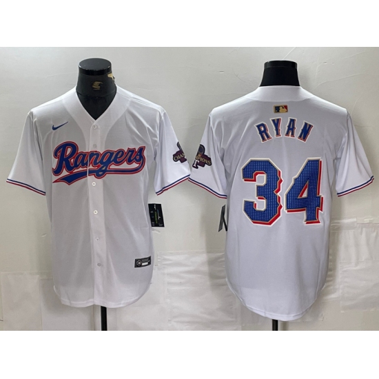 >Men's Texas Rangers #34 Nolan Ryan White 2024 Gold Collection Limited Cool Base Jersey