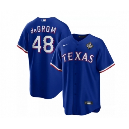 Men's Texas Rangers #48 Jacob DeGrom Royal 2023 World Series Cool Base Stitched Baseball Jersey