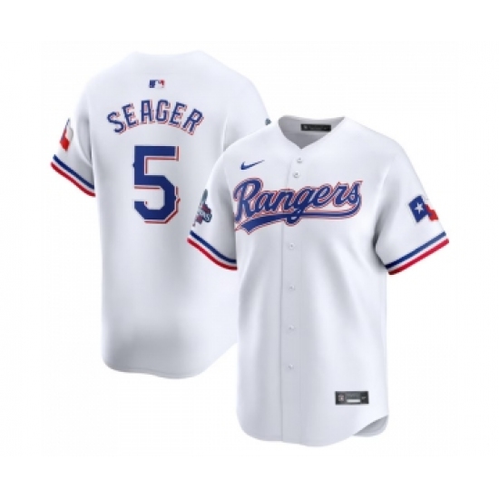 Men's Texas Rangers #5 Corey Seager White 2023 World Series Champions Stitched Baseball Jersey