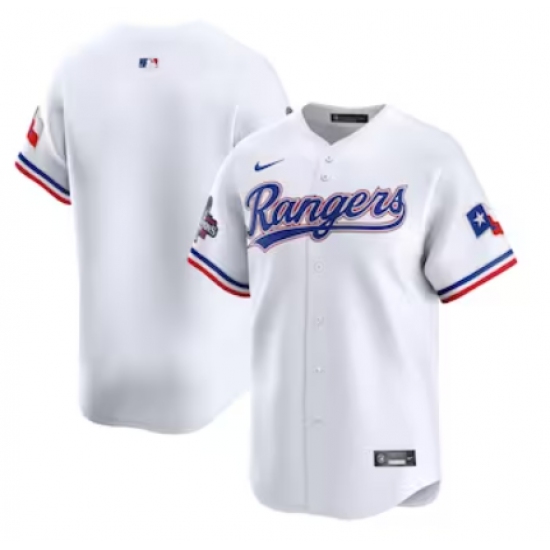 >Men's Texas Rangers Blank Nike White Home 2023 World Series Champions Limited Jersey