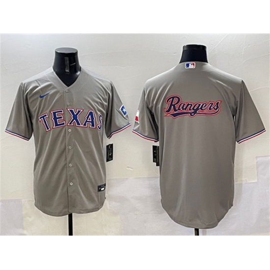 Men's Texas Rangers Team Big Logo Gray With Cool Base Stitched Baseball Jersey