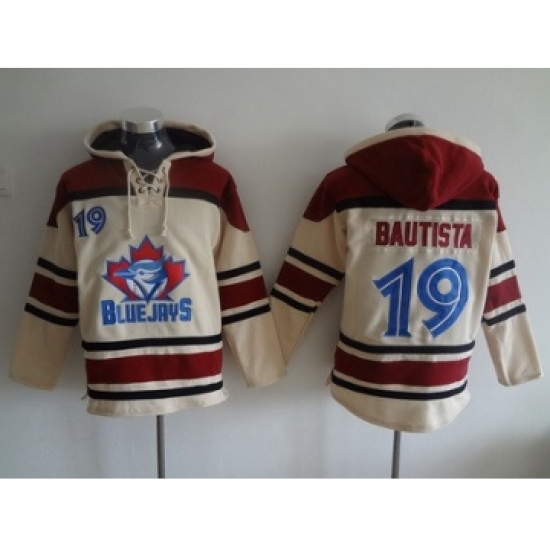 >Men's Toronto Blue Jays #19 Jose Bautista Cream MLB Baseball Hoodie
