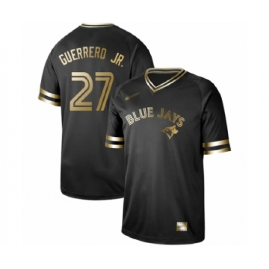 >Men's Toronto Blue Jays #27 Vladimir Guerrero Jr. Authentic Black Gold Fashion Baseball Jersey