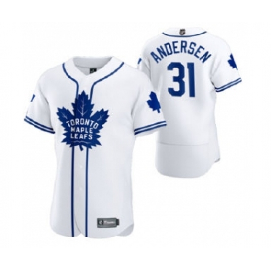 Men's Toronto Maple Leafs #31 Frederik Andersen 2020 Hockey x Baseball Crossover Edition Jersey White