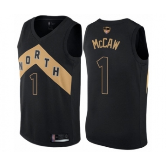 >Men's Toronto Raptors #1 Patrick McCaw Swingman Black 2019 Basketball Finals Bound Jersey - City Edition