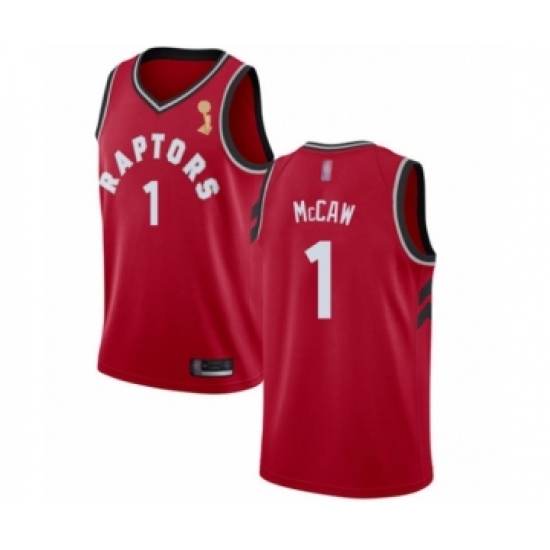 Men's Toronto Raptors #1 Patrick McCaw Swingman Red 2019 Basketball Finals Champions Jersey - Icon Edition