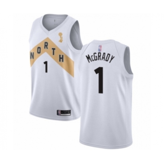 Men's Toronto Raptors #1 Tracy Mcgrady Swingman White 2019 Basketball Finals Champions Jersey - City Edition