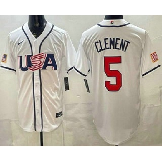 Men's USA #5 Ernie Clement White 2026 World Baseball Classic Cool Base Jersey