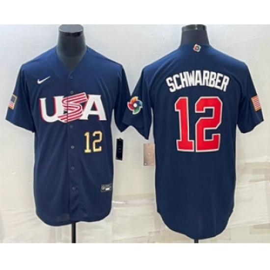 >Mens USA Baseball #12 Kyle Schwarber Number 2023 Navy World Baseball Classic Stitched Jersey
