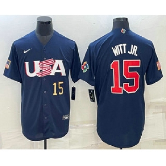>Men's USA Baseball #15 Bobby Witt Jr Number 2023 Navy World Baseball Classic Stitched Jersey