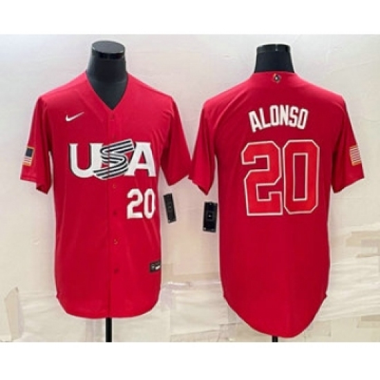 >Men's USA Baseball #20 Pete Alonso Number 2023 Red World Classic Stitched Jersey