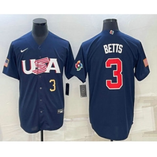 >Mens USA Baseball #3 Mookie Betts Number 2023 Navy World Baseball Classic Stitched Jersey