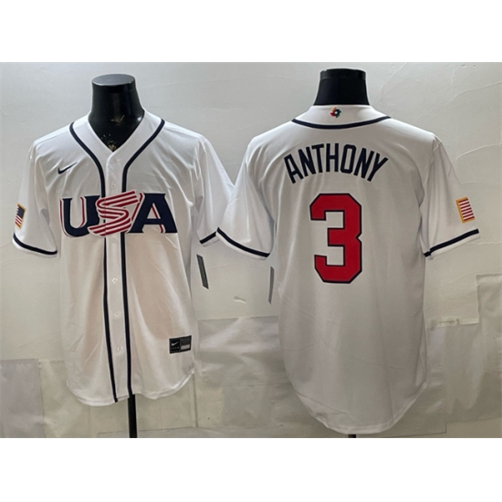 >Men's USA Baseball #3 Roman Anthony White 2026 World Baseball Classic Home Stadium Stitched Jersey