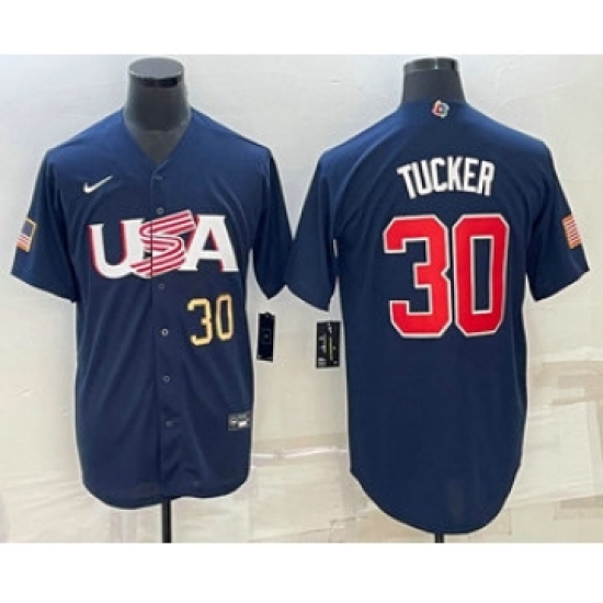 Men's USA Baseball #30 Kyle Tucker Number 2023 Navy World Baseball Classic Stitched Jersey