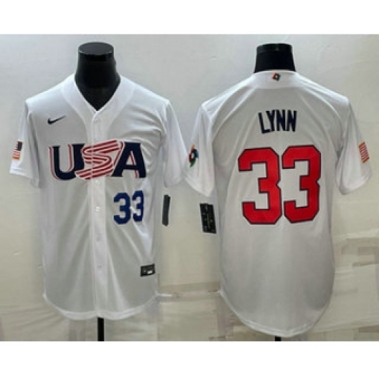 >Men's USA Baseball #33 Lance Lynn Number 2023 White World Baseball Classic Stitched Jersey