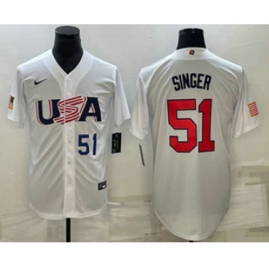 Men's USA Baseball #51 Brady Singer Number 2023 White World Baseball Classic Stitched Jersey