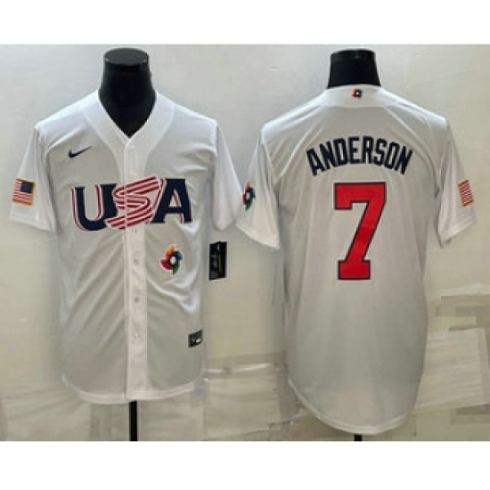 Men's USA Baseball #7 Tim Anderson 2023 White World Baseball Classic Stitched Jersey