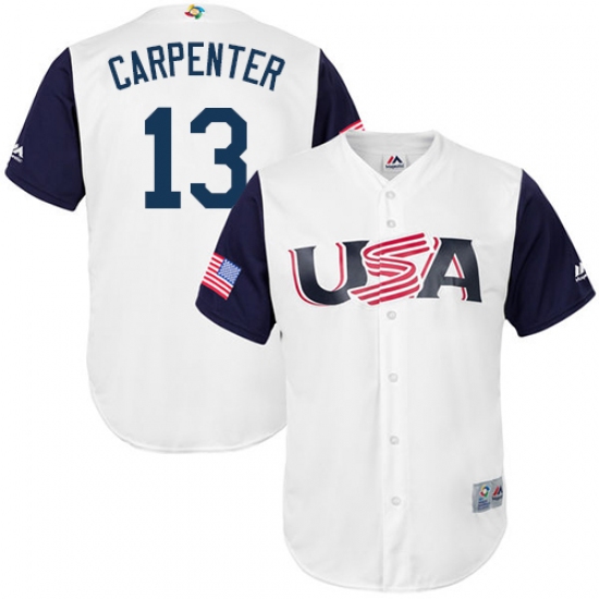Men's USA Baseball Majestic #13 Matt Carpenter White 2017 World Baseball Classic Replica Team Jersey
