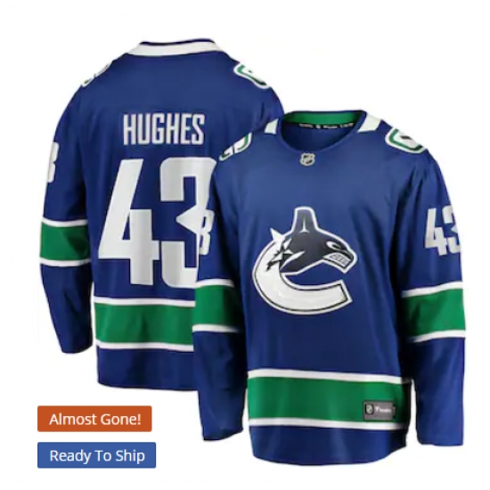 Men's Vancouver Canucks #43 Quinn Hughes Fanatics Branded Blue Home Premier Breakaway Player Jersey