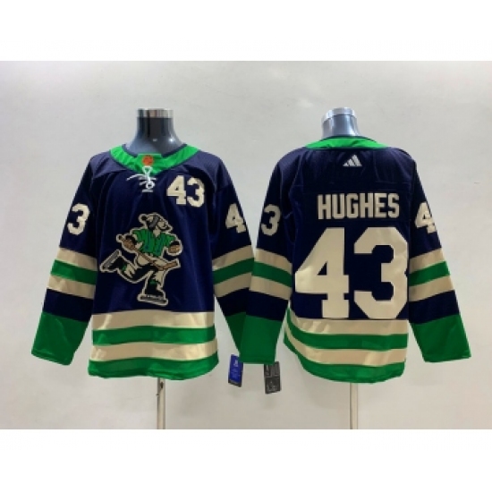 Men's Vancouver Canucks #43 Quinn Hughes Navy 2022 Reverse Retro Stitched Jersey