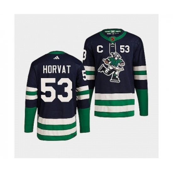 Men's Vancouver Canucks #53 Bo Horvat Navy 2022 Reverse Retro Stitched Jersey