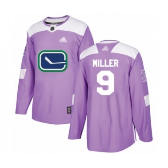 >Men's Vancouver Canucks #9 J.T. Miller Authentic Purple Fights Cancer Practice Hockey Jersey