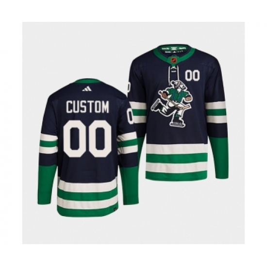 Men's Vancouver Canucks Custom Navy 2022 Reverse Retro Stitched Jersey