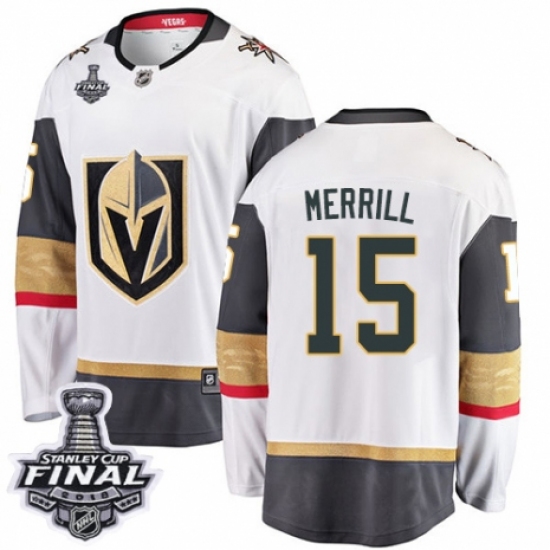 >Men's Vegas Golden Knights #15 Jon Merrill Authentic White Away Fanatics Branded Breakaway 2018 Stanley Cup Final NHL Jersey
