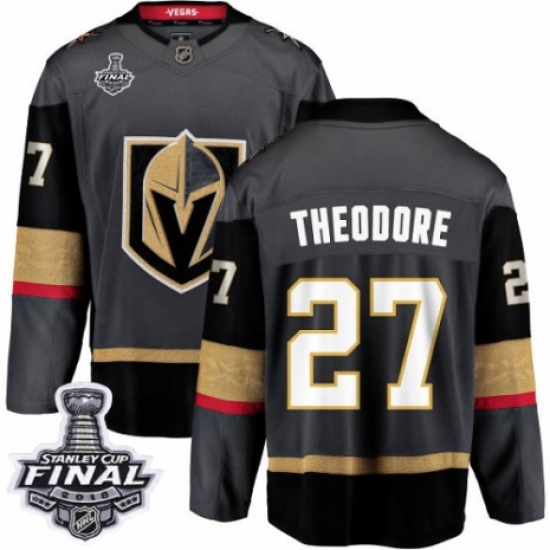Men's Vegas Golden Knights #27 Shea Theodore Authentic Black Home Fanatics Branded Breakaway 2018 Stanley Cup Final NHL Jersey
