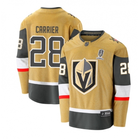 >Men's Vegas Golden Knights #28 CARRIER Gold 2023 Stanley Cup Champions Stitched Jersey