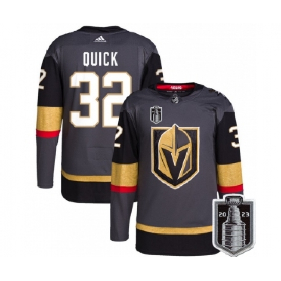 >Men's Vegas Golden Knights #32 Jonathan Quick Gray 2023 Stanley Cup Final Stitched Jersey