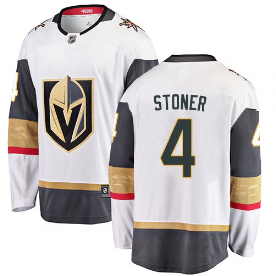 Home>NHL>Vegas Golden Knights>Clayton Stoner>Men's Vegas Golden Knights #4 Clayton Stoner Authentic White Away Fanatics Branded Breakaway NHL Jersey