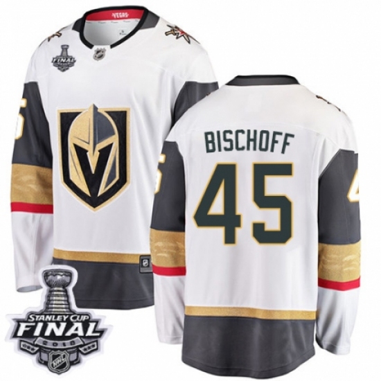 Men's Vegas Golden Knights #45 Jake Bischoff Authentic White Away Fanatics Branded Breakaway 2018 Stanley Cup Final NHL Jersey