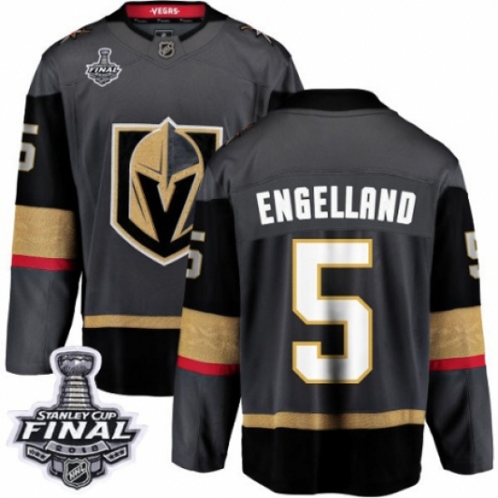 Men's Vegas Golden Knights #5 Deryk Engelland Authentic Black Home Fanatics Branded Breakaway 2018 Stanley Cup Final NHL Jersey
