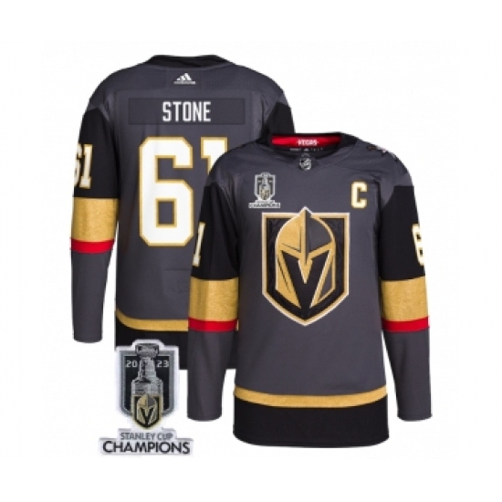 >Men's Vegas Golden Knights #61 Mark Stone Gray 2023 Stanley Cup Champions Stitched Jersey