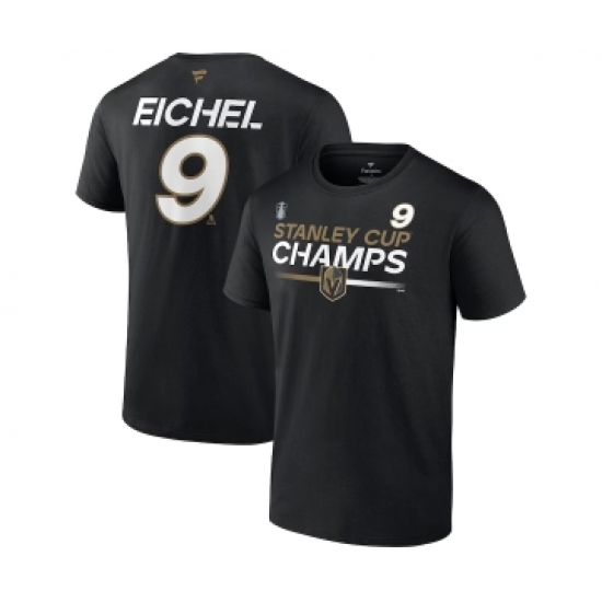 >Men's Vegas Golden Knights #9 Jack Eichel Black 2023 Stanley Cup Champions Pro Name & Number T-Shirt