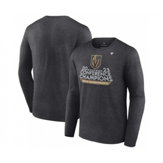 Men's Vegas Golden Knights Heather Charcoal 2023 Western Conference Champions Locker Room Long Sleeve T-Shirt