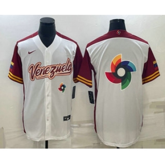 Men's Venezuela Baseball 2023 White World Big Logo Classic Stitched Jerseys