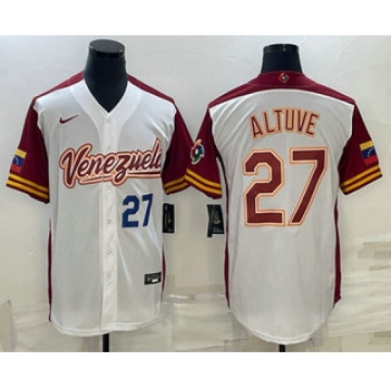 Men's Venezuela Baseball #27 Jose Altuve Number 2023 White World Baseball Classic Stitched Jersey