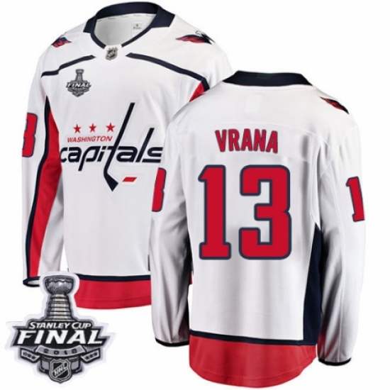 Men's Washington Capitals #13 Jakub Vrana Fanatics Branded White Away Breakaway 2018 Stanley Cup Final NHL Jersey