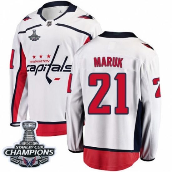 Men's Washington Capitals #21 Dennis Maruk Fanatics Branded White Away Breakaway 2018 Stanley Cup Final Champions NHL Jersey