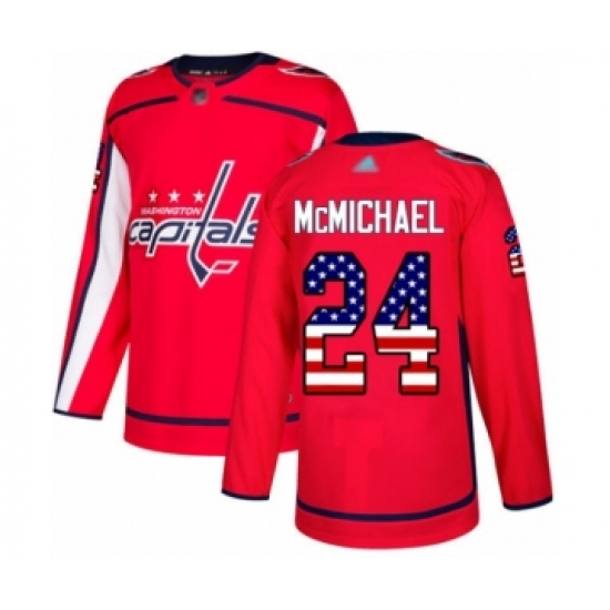 Men's Washington Capitals #24 Connor McMichael Authentic Red USA Flag Fashion Hockey Jersey