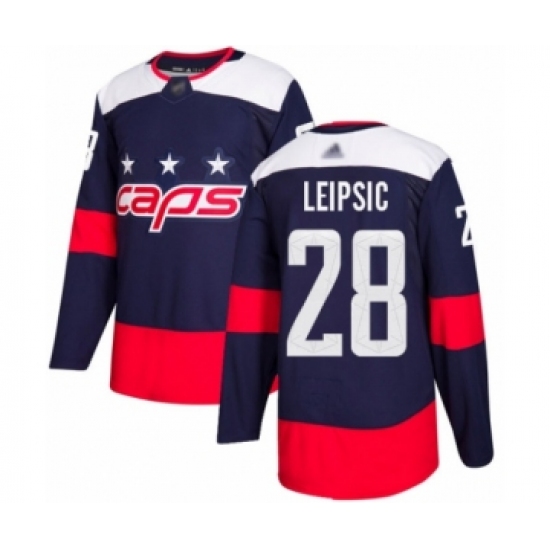 >Men's Washington Capitals #28 Brendan Leipsic Authentic Navy Blue 2018 Stadium Series Hockey Jersey