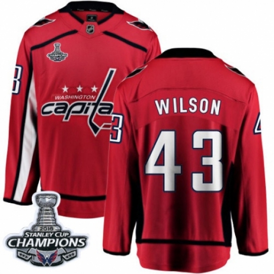 >Men's Washington Capitals #43 Tom Wilson Fanatics Branded Red Home Breakaway 2018 Stanley Cup Final Champions NHL Jersey